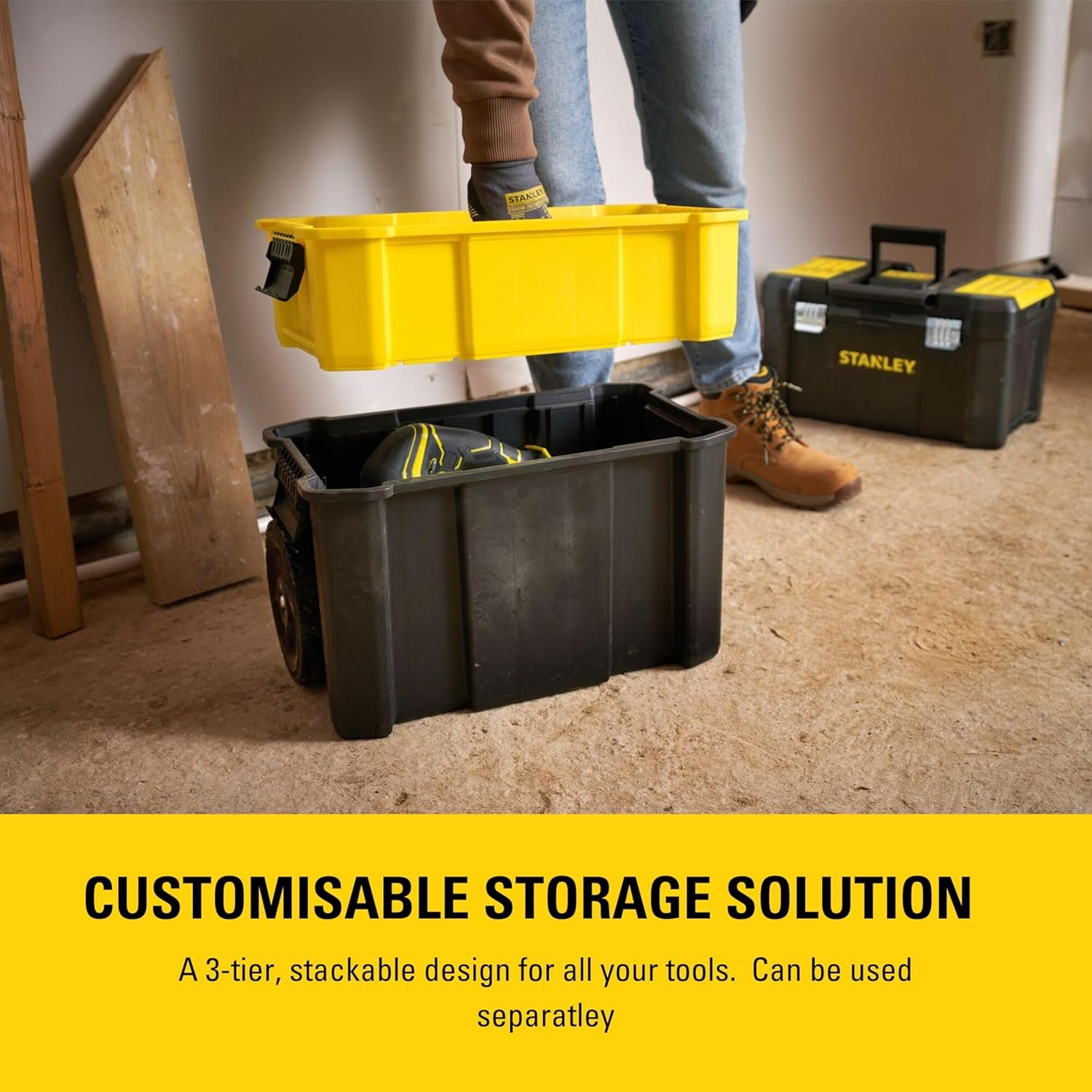 A 3-tier. stackable design for all your tools. Can be used separatley